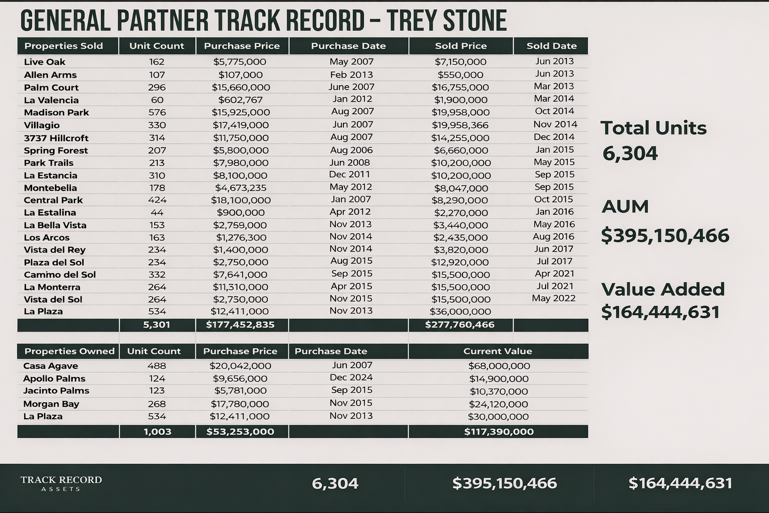 Along the way, Trey served as President of The Houston Apartment Association and built his real estate portfolio up to 5,913 units, beginning with just one rent house.